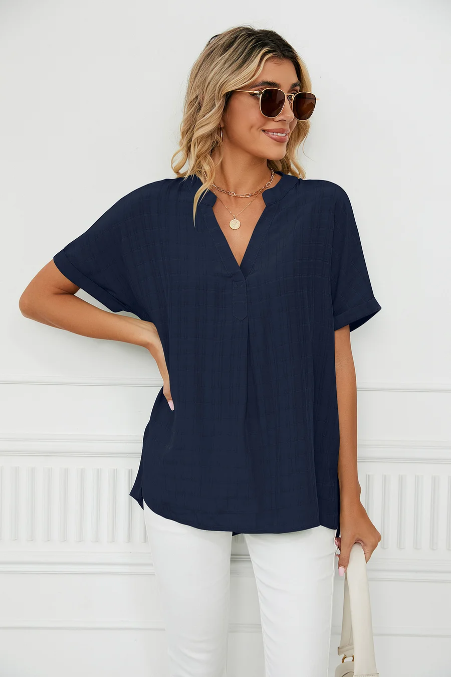 ➤ Combination: The simple style of solid color will never go out of style. Fashionable V-neck design, the short-sleeved T-shirt can easily match any clothes and shoes in your wardrobe, such as various fashion items, skinny jeans, pants, skirts, shorts, etc.
