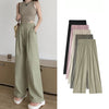 Elastic waist and wide-leg trousers to modify the figure and highlight the long legs
