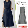 Round Neck Solid Color Cotton Linen Long Dress With Belt