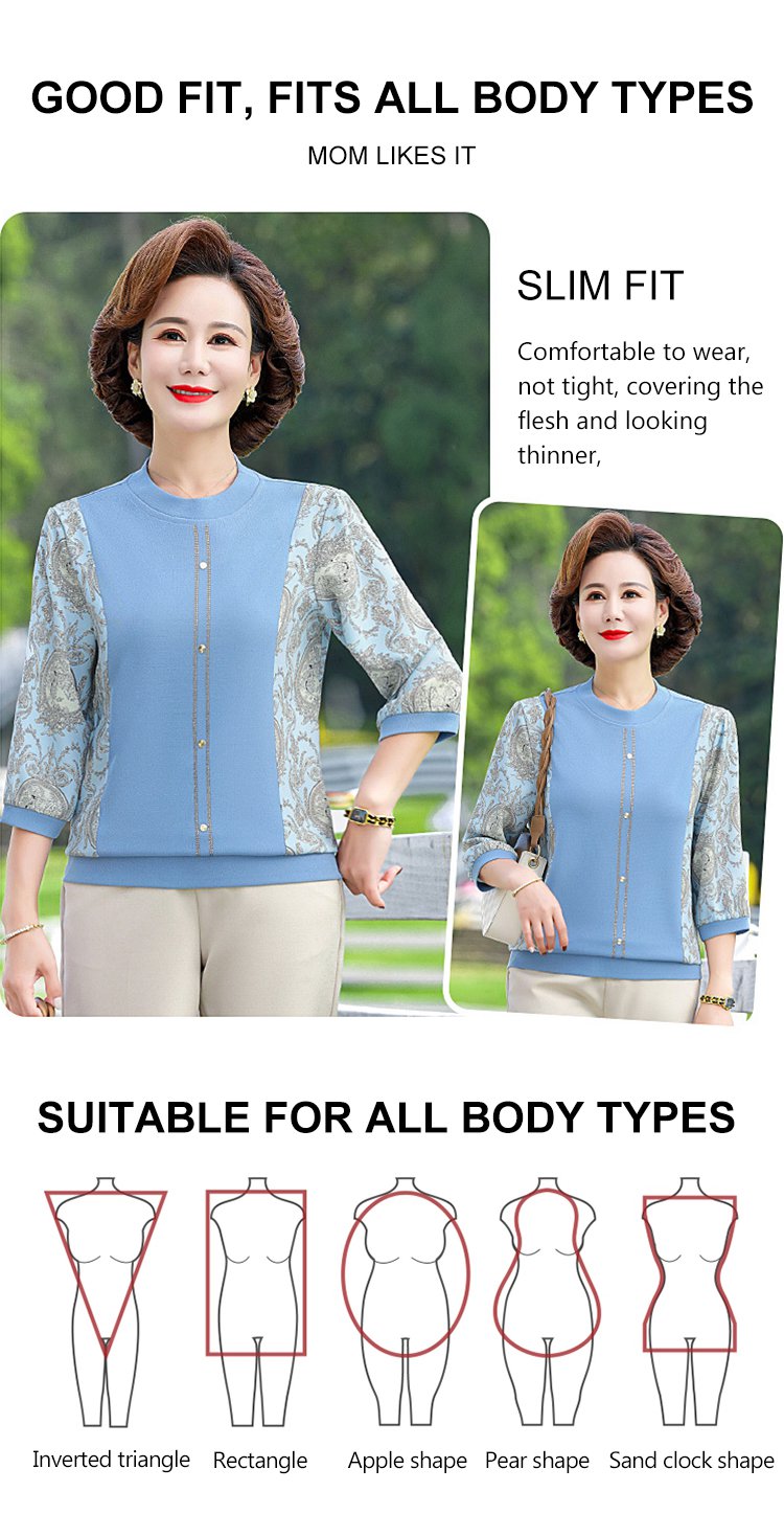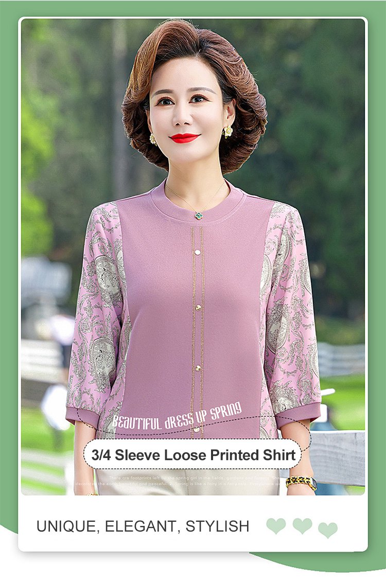 New Loose Print 3/4 Sleeve Shirt