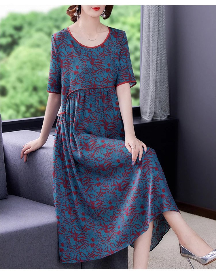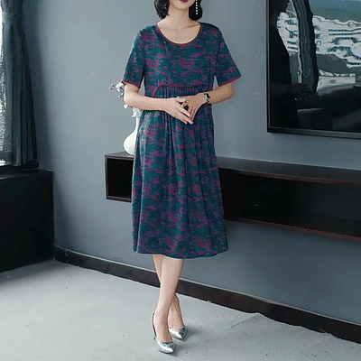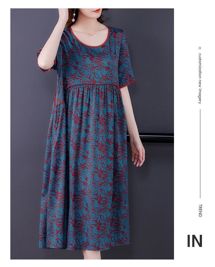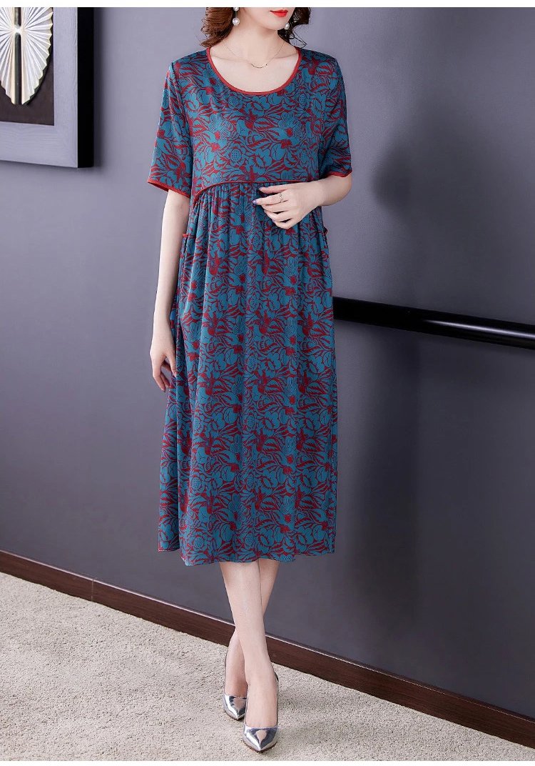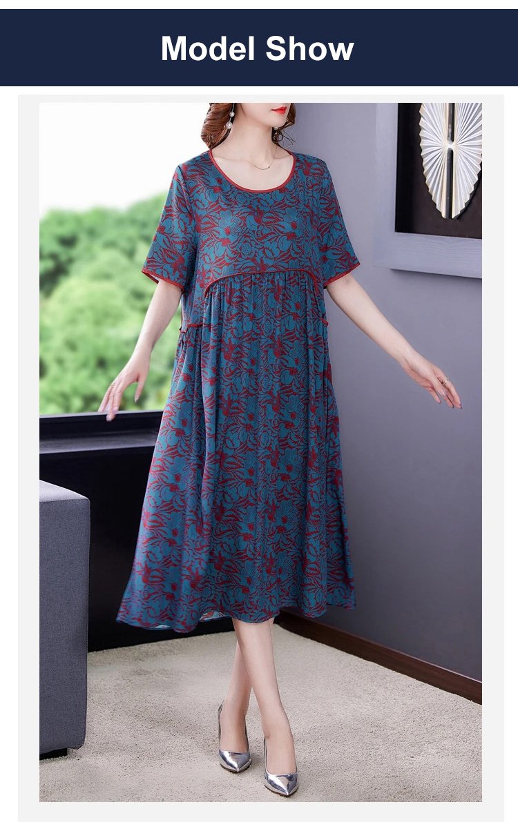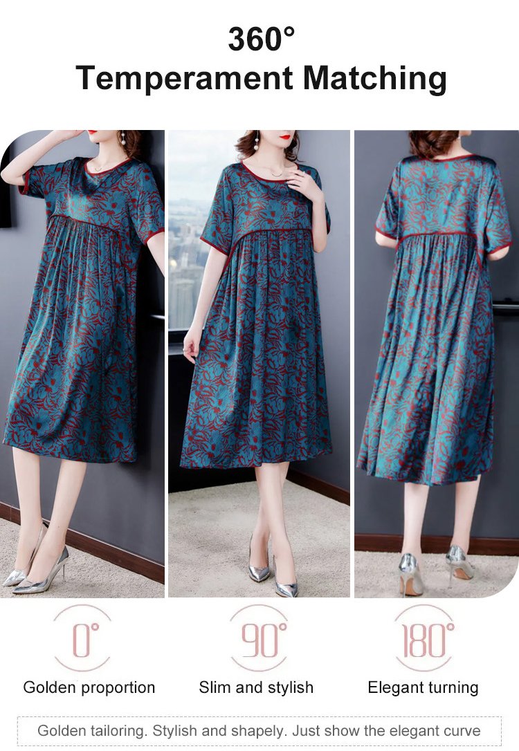 Pleated Loose Flesh Covering Cool Short-sleeved Dress