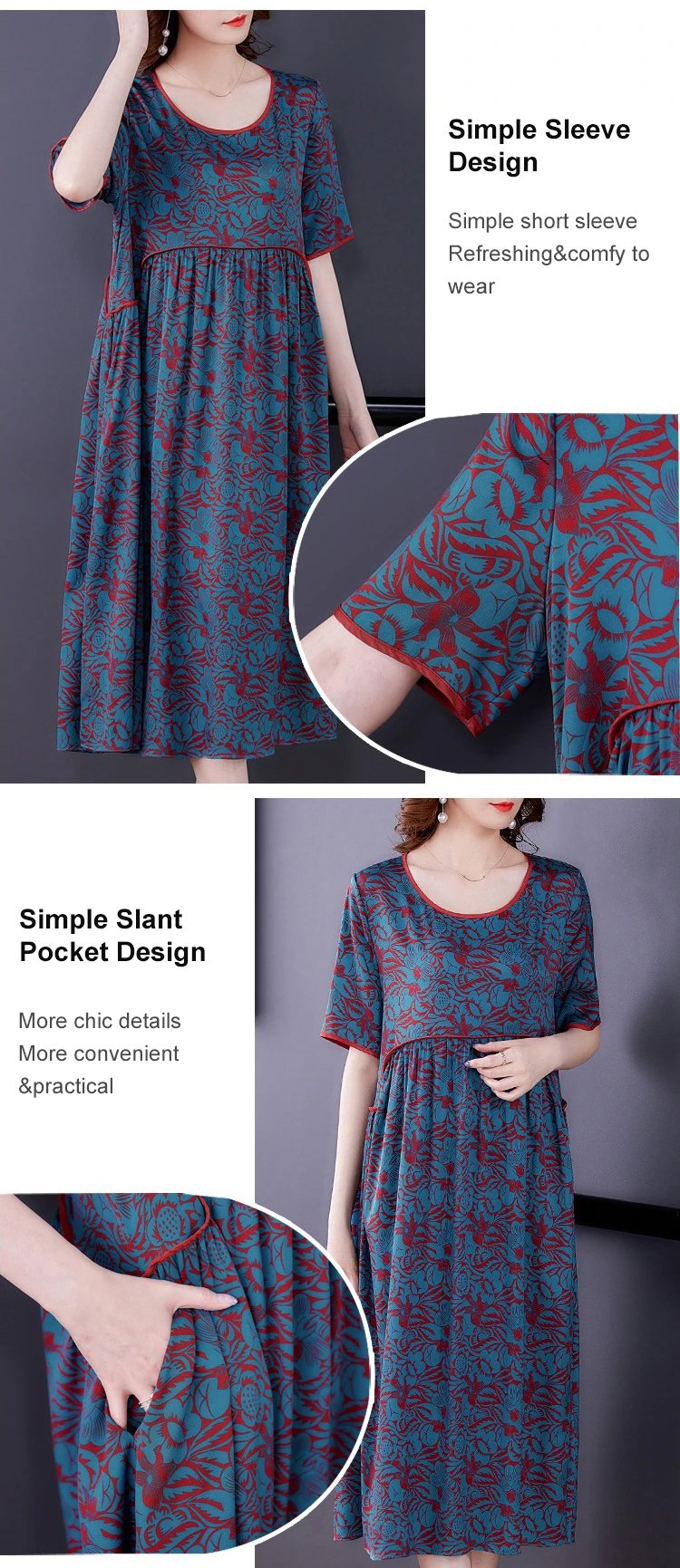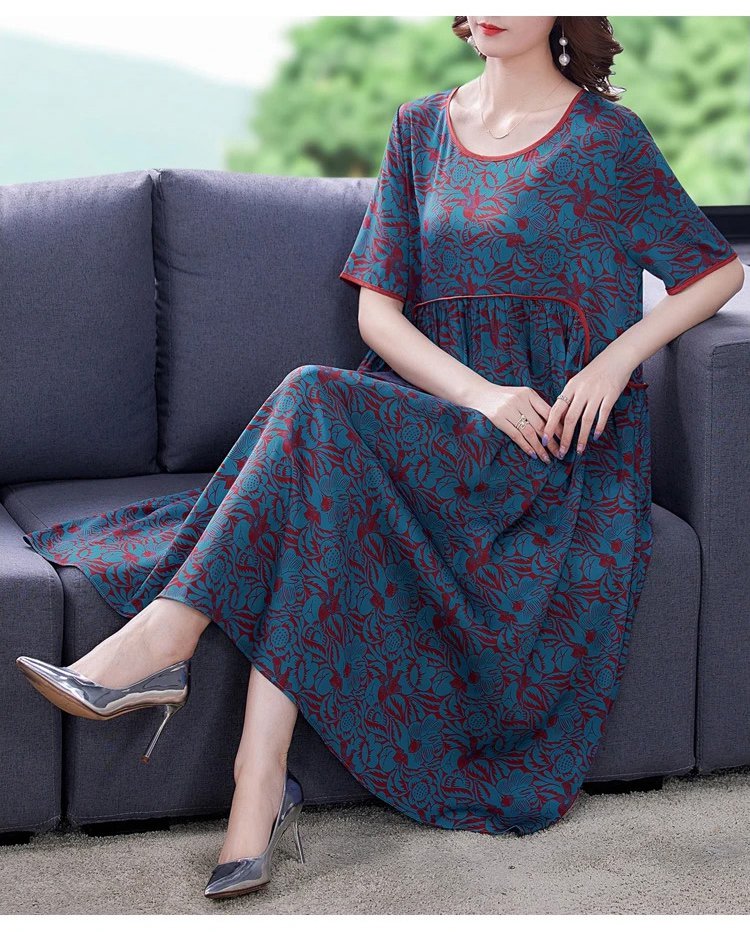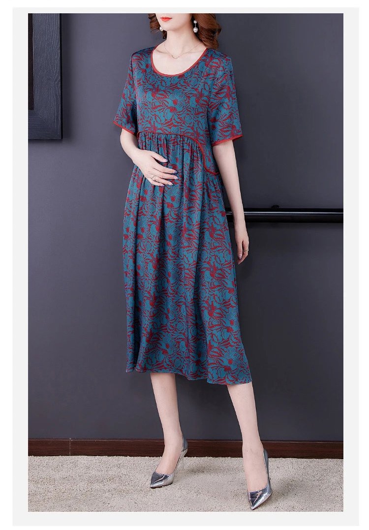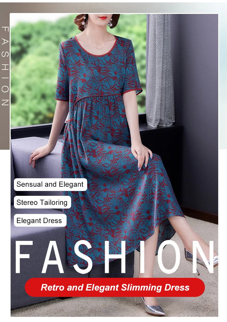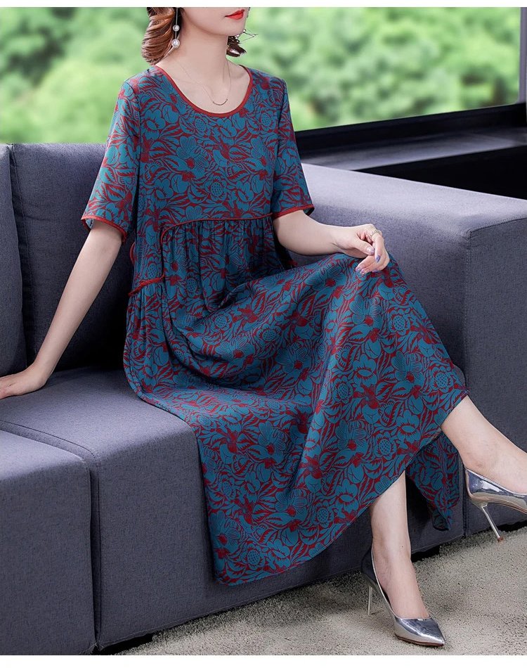 Pleated Loose Flesh Covering Cool Short-sleeved Dress